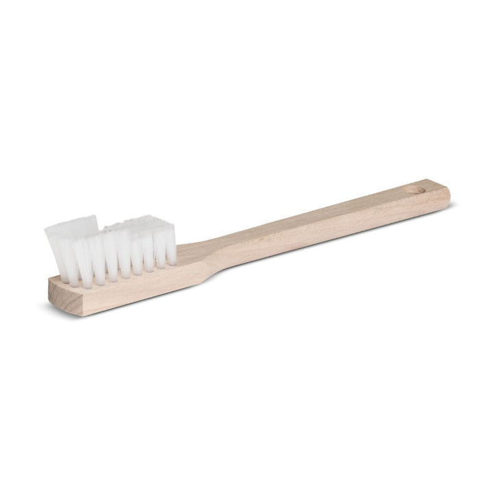 Spazzola in legno robusta e collaudata per la pulizia dei tamponi in spugna e lana. Consente la rimozione efficace dei residui di lucidatura dal tampone tra un passaggio e l'altro.